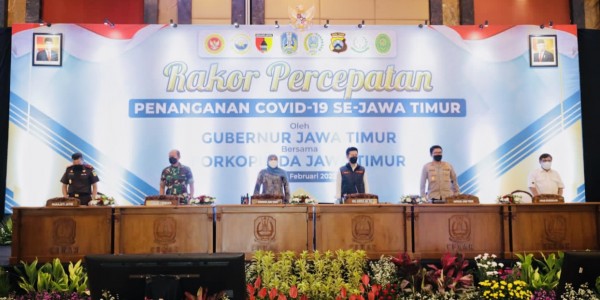 Telusur.co.id - Forkopimda Jawa Timur menggelar Rapat Koordinasi (Rakor) percepatan penanganan Covid-19 se-Jawa Timur, pada Selasa (08/2)