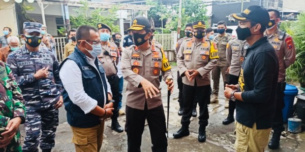 Telusur.co.id - Kapolda Jatim, Irjen Pol Nico Afinta, didampingi Pejabat Utama (PJU) Polda Jatim meninjau lokasi banjir