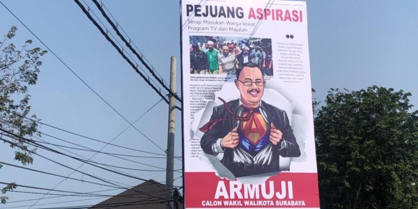 Telusur.co.id - Billboard Eri Cahyadi - Armuji terpasang di berbagai sudut kota Surabaya menjelang pendaftaran calon Kepala