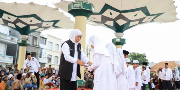 Telusur.co.id - Gubernur Khofifah: Wujud Syukur dan Mengharap Keberkahan Allah SWT dengan Memperbanyak Sedekah pada Anak Yatim Pemerintah
