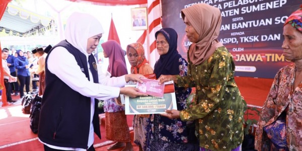 Telusur.co.id - Gubernur Jawa Timur, Khofifah Indar Parawansa menyerahkan bantuan sosial kepada masyarakat Kabupaten Sumenep sekaligus tali