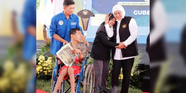 Telusur.co.id - Gubernur Jawa Timur, Khofifah Indar Parawansa menyerahkan bantuan sosial kepada Lansia, Asistensi Sosial Penyandang Disabilitas