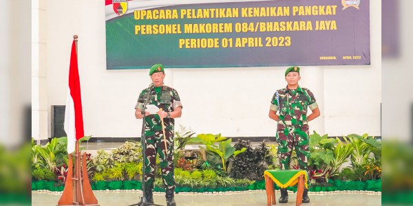 Telusur.co.id - Komandan Korem 084/Bhaskara Jaya, Brigjen TNI Terry Tresna Purnama memimpin upacara kenaikan pangkat periode 1