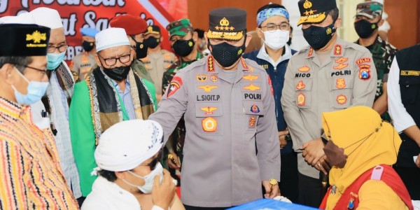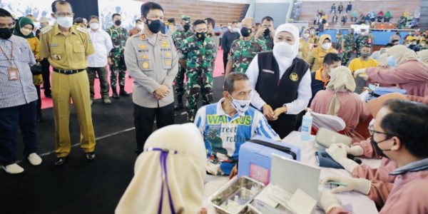 Telusur.co.id - Forkopimda Jawa Timur menggelar vaksinasi massal secara serentak, sebanyak 18.905 dosis, di 65 titik. Sementara