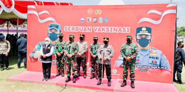 Telusur.co.id - Forkopimda Jawa Timur mendampingi Panglima TNI dan Kapolri melakukan pengecekan Serbuan vaksinasi, khusus untuk pelajar