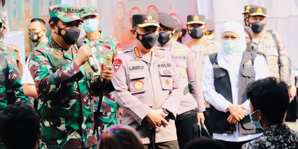 Telusur.co.id - Didampingi Forkopimda Jawa Timur, Panglima TNI, Kapolri, Menteri Kesehatan RI dan Kepala BNPB memantau pelaksanaan