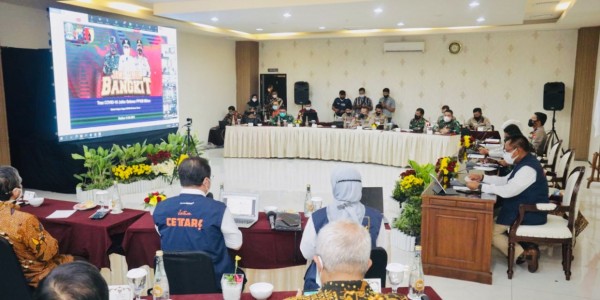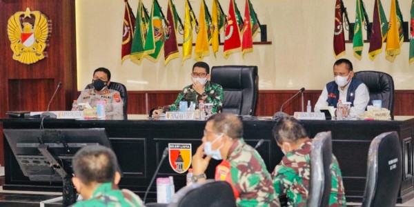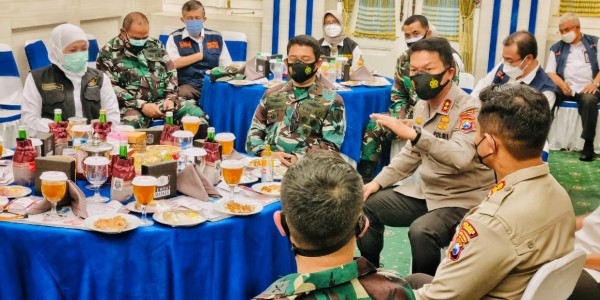 Telusur.co.id - Panglima TNI, Kapolri, Menkes RI dan Kepala BNPB, serta Forkopimda Jawa Timur gelar rapat koordinasi
