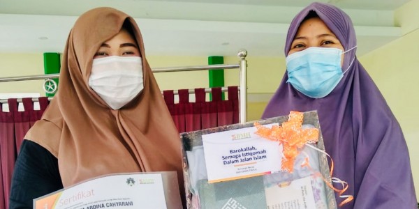 Telusur.co.id - Dai tangguh Lembaga Amil Zakat Nasional Baitul Maal Hidayatullah (BMH), Ustadz Baihaqi menuntun seorang wanita