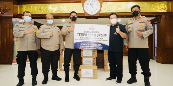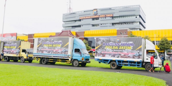 Telusur.co.id - Wakapolda Jatim, Brigjen Pol Slamet Hadi Supraptoyo melakukan penyerahan secara simbolis dan melepas pedistribusian bantuan