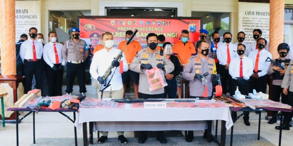 Telusur.co.id - Polresta Bayuwangi mengungkap senjata api (Senpi) rakitan ilegal, di sebuah bangunan rumah yang berada di