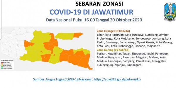 Telusur.co.id - Sebanyak 19 Kabupaten/Kota atau 50 persen dari total keseluruhan Kabupaten/Kota di Provinsi Jawa Timur dinyatakan