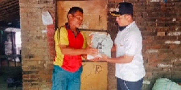 Telusur.co.id - Kepala Desa Duri, Kec. Slahung, Kab. Ponorogo, Dwi Mahmudi dibantu dengan pemuda desa, membagikan paket