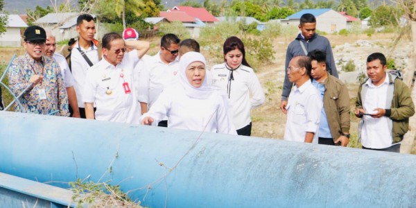 Telusur.co.id - Gubernur Jawa Timur Khofifah Indar Parawansa meninjau progres pembangunan jaringan pipa air bersih di