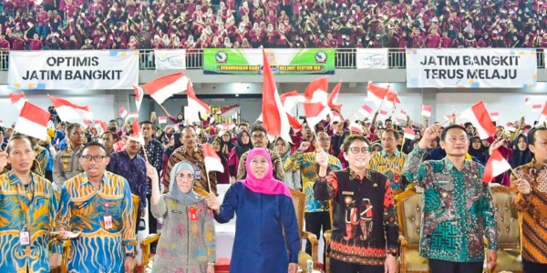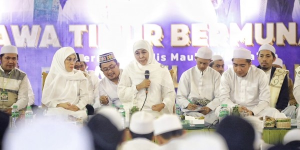 Telusur.co.id - Gubernur Jawa Timur, Khofifah Indar Parawansa menghadiri 'Jawa Timur Bermunajat' bersama Majlis Maulid Wat Ta'lim
