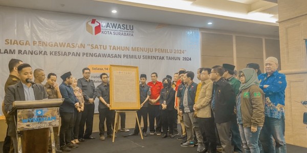 Telusur.co.id - Badan Pengawas Pemilu (Bawaslu) Kota Surabaya menggelar Siaga Pengawasan "Satu Tahun Menuju Pemilu 2024" dalam