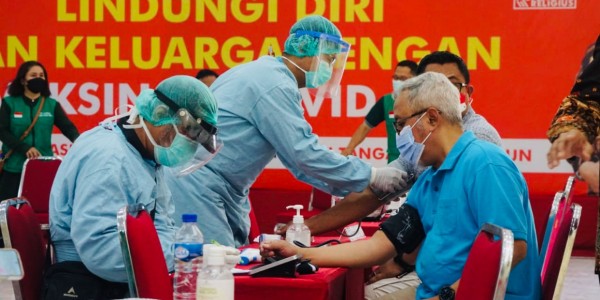 Telusur.co.id - Pelaksanaan vaksinasi Covid-19 dosis kedua yang dilaksanakan di Aula Ponpes Sabilurrosyidin Annur, Gayungan, Surabaya menyediakan