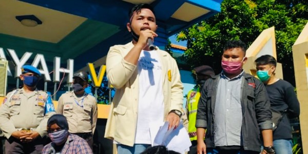 Telusur.co.id - Puluhan mahasiswa UPN “Veteran” Jawa Timur yang menamakan diri Aliansi Mahasiwa UPNV Jatim menggelar demonstrasi
