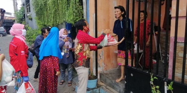 Telusur.co.id - Anggota Dewan dari Fraksi PSI Surabaya, Tjutjuk Supariono melakukan kegiatan membagi sembako 72 KK di