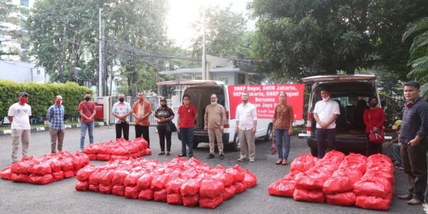 Telusur.co.id - Pegawai Mandiri Group di berbagai wilayah Indonesia serentak membagikan bantuan sembako dan makanan siap saji