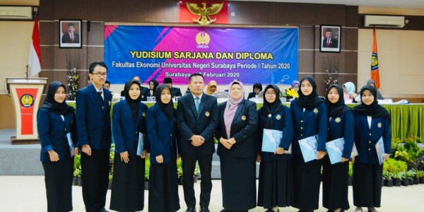 Telusur.co.id - Prosesi Yudisium Periode I FE Unesa Tahun 2020 digelar di Auditorium G2 Fakultas Ekonomi Universitas