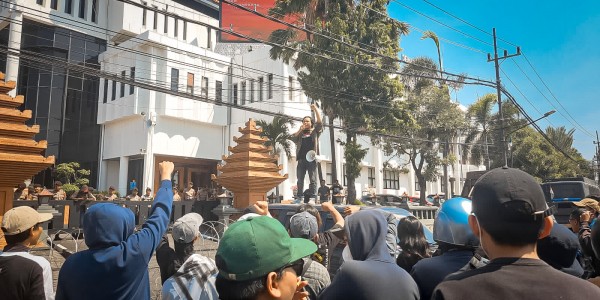 Telusur.co.id - Aliansi Mahasiswa Islam Nusantara (AMIN) melakukan aksi damai di depan gedung DPRD Jawa Timur pada