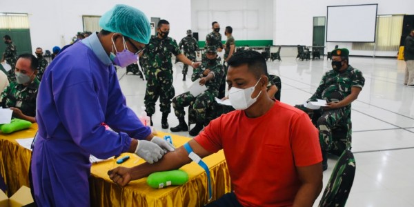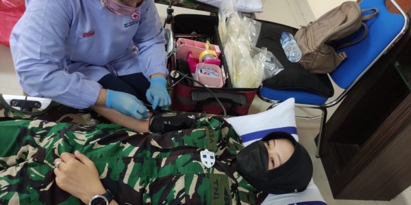 Telusur.co.id - Dalam rangka menyambut HUT TNI ke-76 Tahun 2021, Korem 084/Bhaskara Jaya bersama Denkesyah 05-04-04 Surabaya