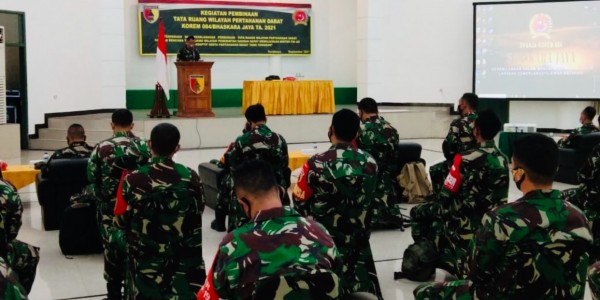 Telusur.co.id - Korem 084/Bhaskara Jaya gelar kegiatan Pembinaan Tata Ruang Wilayah Pertahanan Darat, yang diikuti oleh Danramil,