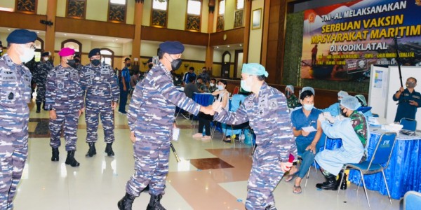 Telusur.co.id - Hari kedua pelaksanaan program serbuan vaksin TNI AL di Komando Pembinaan Doktrin Pendidikan dan Latihan