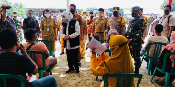 Telusur.co.id - Forkopimda Jawa Timur mengecek pelaksanaan vaksinasi di desa Beji, Kec. Jenu, Kab. Tuban. Kunjungan ini