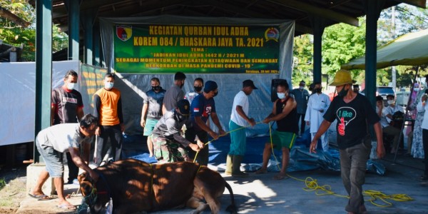 Telusur.co.id - Korem 084/Bhaskara Jaya merayakan lebaran Idul Adha 1442 H/2021 M dengan tema “Jadikan Idul Adha