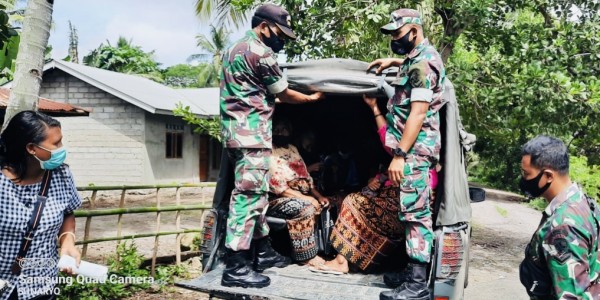Telusur.co.id - Anggota Koramil 1603-01/Alok, Kab. Sikka mengantar jemput lansia dan membagikan beras. Banyak cara yang dilakukan