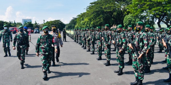 Telusur.co.id - Danrem 084/Bhaskara Jaya, Brigjen TNI Herman Hidayat Eko Atmojo selaku Dansatgaspamwil memimpin apel gelar pasukan
