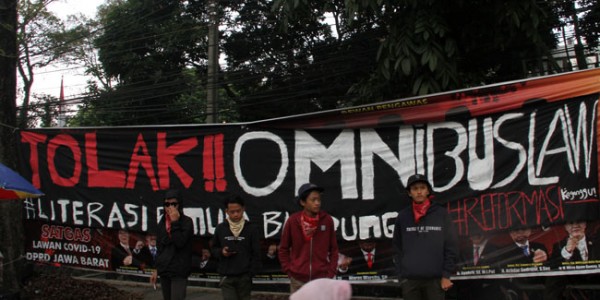 Telusur.co.id - Aksi demonstrasi menolak UU Omnibus Law Cipta Kerja oleh sekelompok orang yang mengatasnamakan Masyarakat Bali,