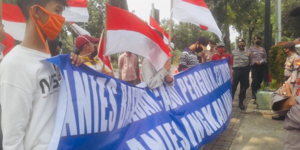 Telusur.co.id - Puluhan mahasiswa yang tergabung dalam Jaringan Mahasiswa Indonesia Berdaulat, melakukan demonstrasi menolak reklamasi Ancol di