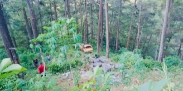 Telusur.co.id - Truk bermuatan getah pinus, terjun bebas ke dalam jurang sedalam 25 meter di Jl. Raya