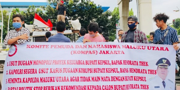 Telusur.co.id - Komite Mahasiswa dan Pemuda Maluku Utara (KOMPAS) Jakarta menggelar aksi unjuk rasa di depan Mabes