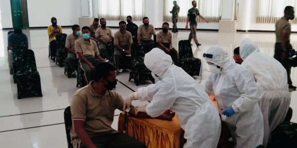Telusur.co.id - Mendadak Aula Makorem 084/Bhaskara Jaya dipenuhi oleh beberapa peralatan medik, sekaligus tenaga medis dengan dilengkapi