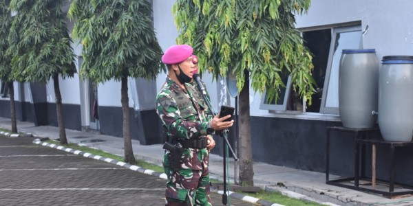 Telusur.co.id - Komandan Batalyon Marinir Pertahanan Pangkalan (Danyonmarhanlan) V Surabaya, Letkol Marinir Andi Ichsan melaksanakan Jam Komandan