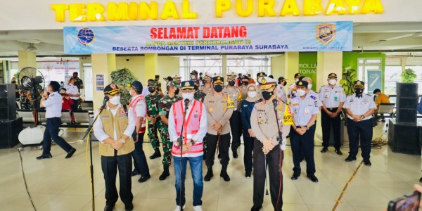 Telusur.co.id - Menteri Perhubungan RI, Budi Karya Sumadi, didampingi Forkopimda Jawa Timur, Gubernur Jatim, Khofifah Indar Parawansa,
