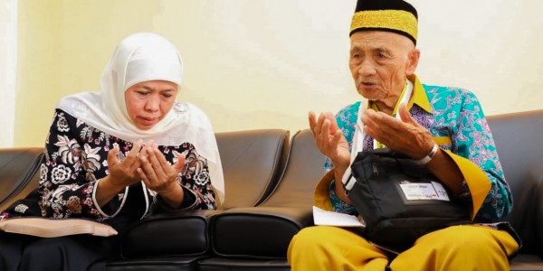 Telusur.co.id - Gubernur Jawa Timur, Khofifah Indar Parawansa bersapa menemui Harun warga Pamekasan berusia 119 tahun yang