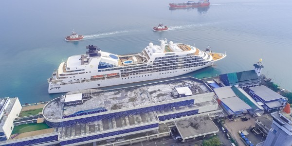Telusur.co.id - Pelabuhan Tanjung Perak mendapat kunjungan perdana kapal pesiar Ms. Seabourn Sojourn yang memiliki GRT (Gross