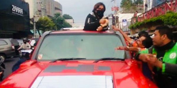 Telusur.co.id - Sebuah video perempuan bermasker membagikan uang pecahan Rp 100 ribu dari atas mobil mewah, Hummer