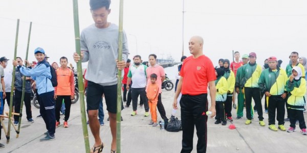 Telusur.co.id - Dinas Kepemudaan dan Olahraga Provinsi Jawa Timur (Dispora Jatim) pagi ini bermain Egrang, Terompah, Gobak
