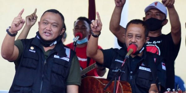 telusur.co.id - SURABAYA, Pemilihan Walikota dan Wakil Walikota Surabaya terhitung kurang lebih sebulan. Seluruh tim relawan dari kedua pasang calon terus giat untuk mengkampanyekan pasangan calon mereka. Tidak terkecuali relawan Bala Bhineka bakal calon Walikota Surabaya Eri Cahyadidan Armuji yang melakukan deklarasikan di kawasan Simo Hilir, Surabaya, Jawa Timur, Jumat (23/10/2020).